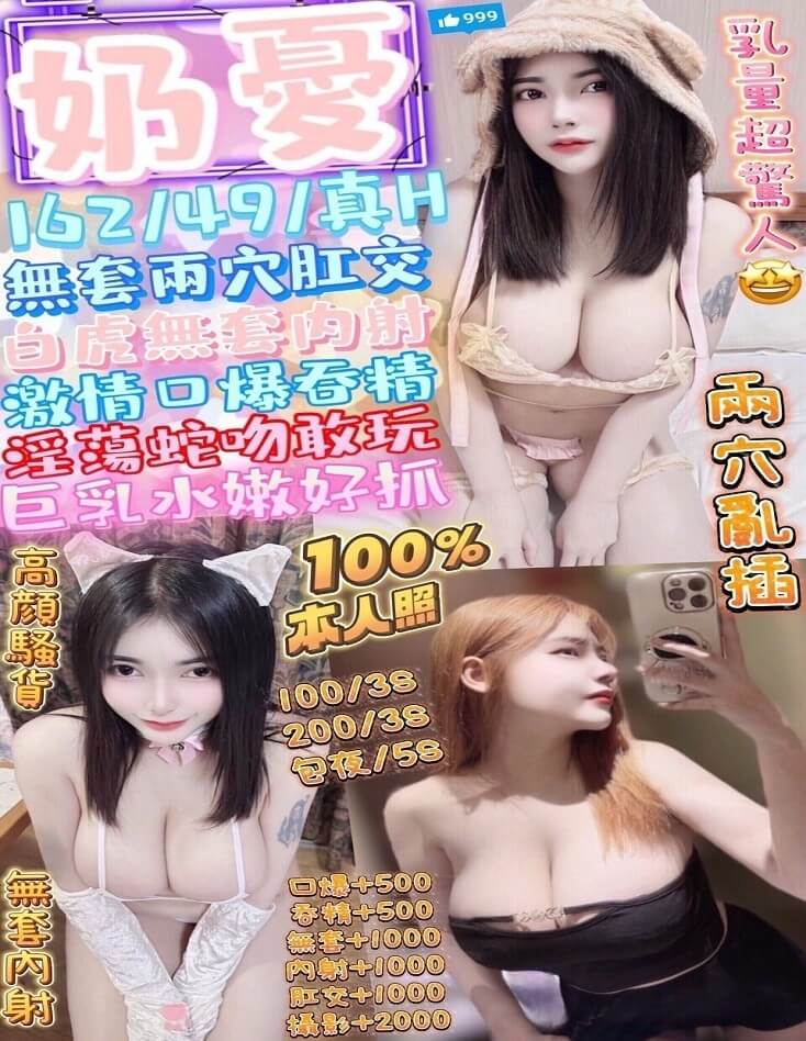服務/類型: 無套吹 戴套做 共浴 按摩 小親親 品鮑 奶泡 舔蛋 69 胸推 臀推 自慰秀 深喉嚨 角色扮演/情趣用品/絲襪(客人自備)